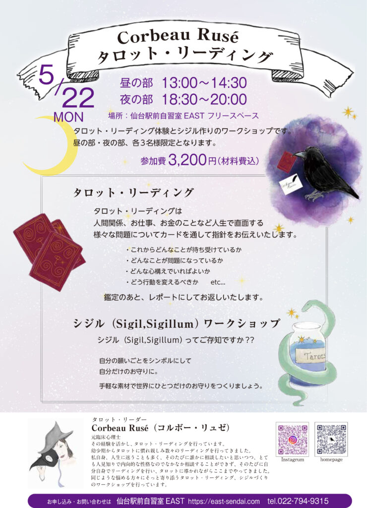 5月22日(月)開催のイベント第2弾「タロット・リーディング」の詳細が決定いたしました!