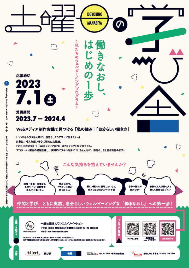 「土曜日の学び舎」の詳しい内容は、一般社団法人ワンエムイノベーションのホームページで