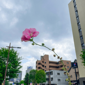 都会のタチアオイが