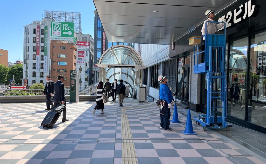 ①仙台駅2階の東西自由通路から東口のペデストリアンデッキに出ると、こんな風景が。