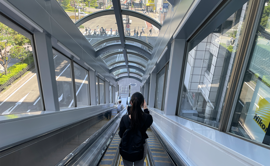 ⑦ヨドバシ第2ビル手前で左に曲がってエスカレーターを降ります。
